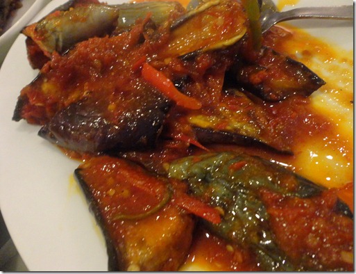 sambal terung. i don’t really like eggplant because the texture is much to soft to be in a sambal (chili paste) – haha, but mr. khairul loves this one too.